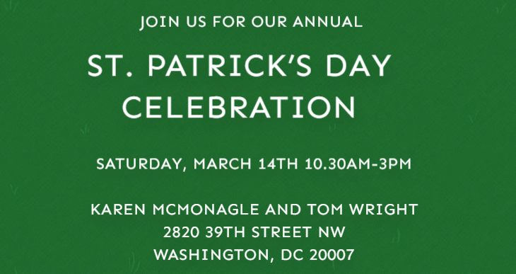Join President of the Friends of Queen's University Belfast Inc. Karen McMonagle and her family, for their annual St. Patrick's Weekend Party, kindly hosted at their home.