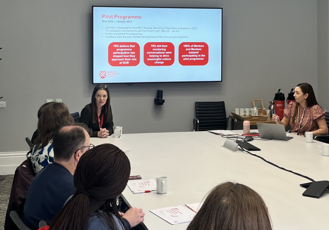 Following the success of the pilot - which ran from May 2022 to January 2023 – the second phase of the REC Reverse Mentoring programme launched on Thursday 24th August.  Twelve colleagues (6 pairs) from across Queen’s have volunteered to take part in this year’s accelerated-style programme, committing to 3 conversations in 3 months from September to November 2024.