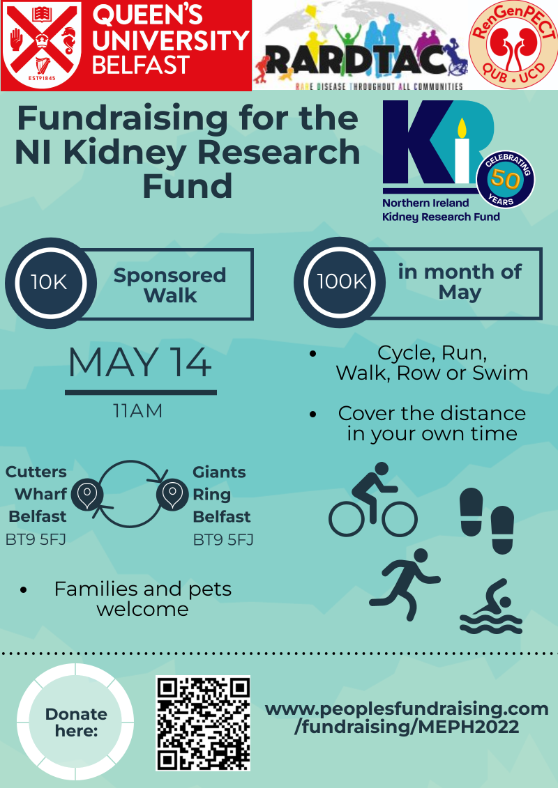 The NI Kidney Research Fund is a wonderful charity who are celebrating 50 years this year. Show your support by participating in these fundraising events! Details below.