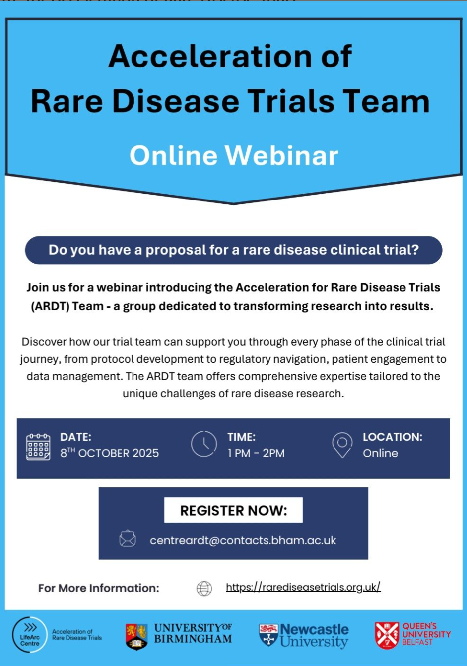 Join our Acceleration for Rare Disease Trials (ARDT) Team Webinar to learn how our experts can support you through every step of the clinical trial journey – from protocol development and regulatory navigation to patient engagement and data management.