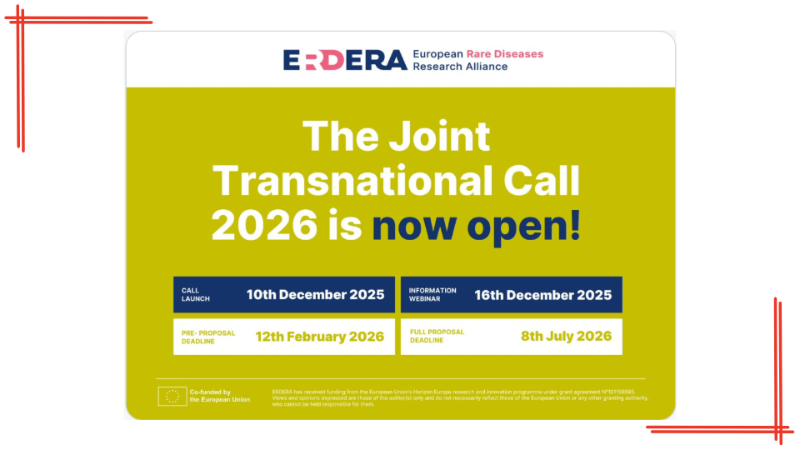 On 10 December 2025, ERDERA launched its 2026 Joint Transnational Call, “Resolving unsolved cases in rare genetic and non‑genetic diseases”.
