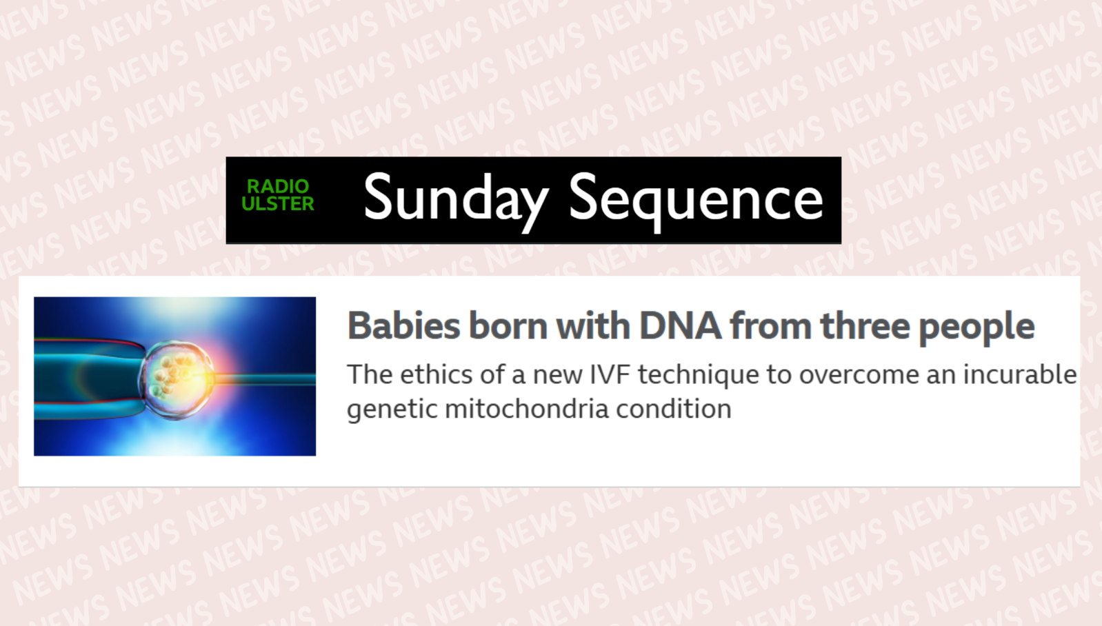 A pioneering new technique creates IVF embryos with DNA from three people to stop children from inheriting an incurable genetic mitochondria condition. Eight healthy babies have been born in a regulated trial. Audrey Carville hears about the impact this technique may have on parents from Liz Curtis, the founder of The Lily Foundation. Her daughter Lily was born with mitochondrial disease and lived for eight months. And genetic medicine consultant Dr Shane McKee explains how the three donor technique works.