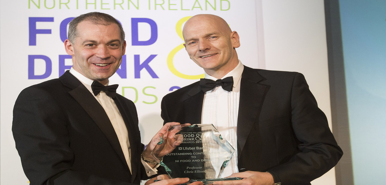 Faculty Pro-Vice-Chancellor for Medicine, Health and Life Sciences, Professor Chris Elliott won 'Outstanding Contribution Award' at the 2017 Northern Ireland Food & Drinks Awards (NIFDA) last week.