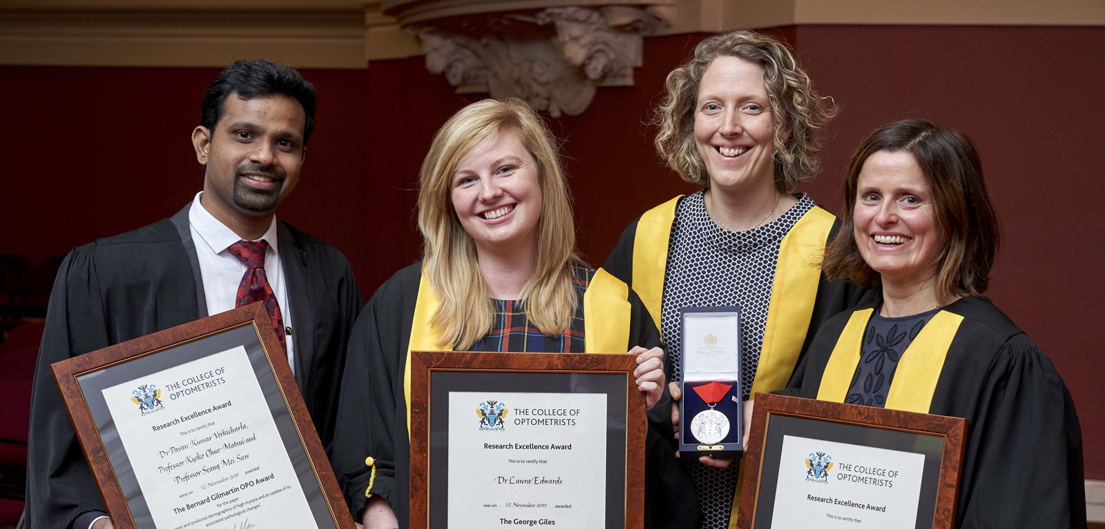 Dr Hogg (pictured, second from right) has been recognised by the College of Optometrists for her work in the area of macular degeneration and disease in the College of Optometrists Research Excellence Awards 2019, which highlight achievement and celebrate outstanding contributions to research in the fields of optometry, optics and vision science.