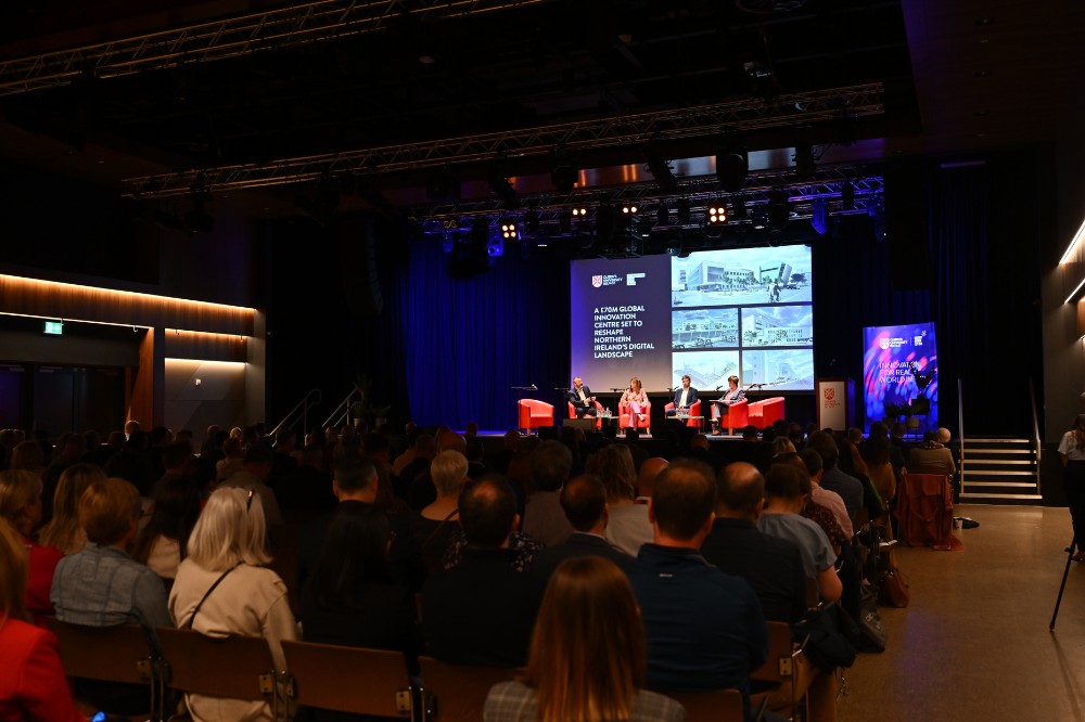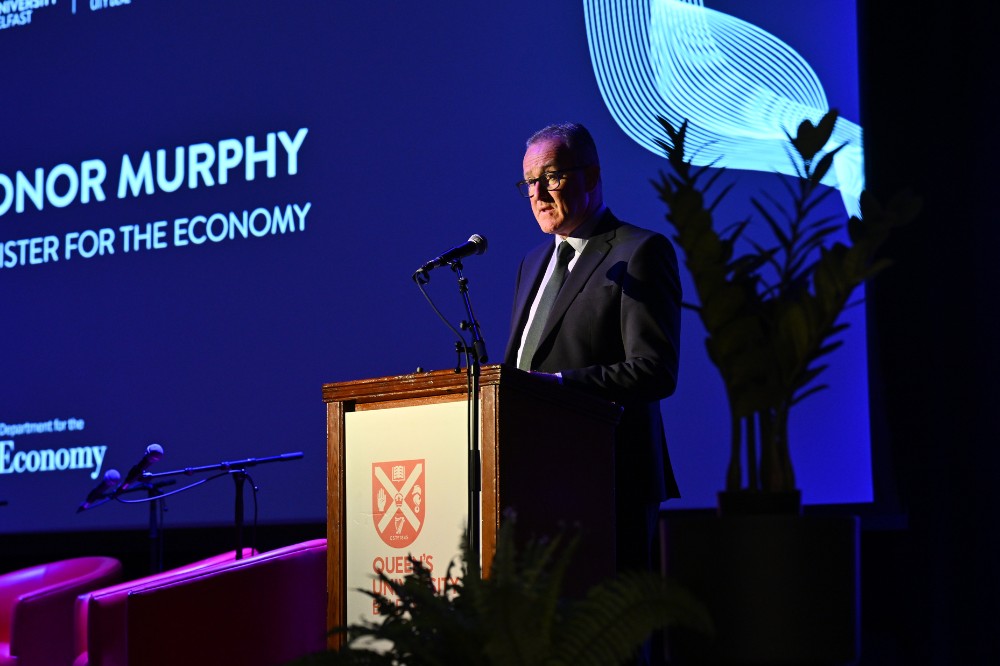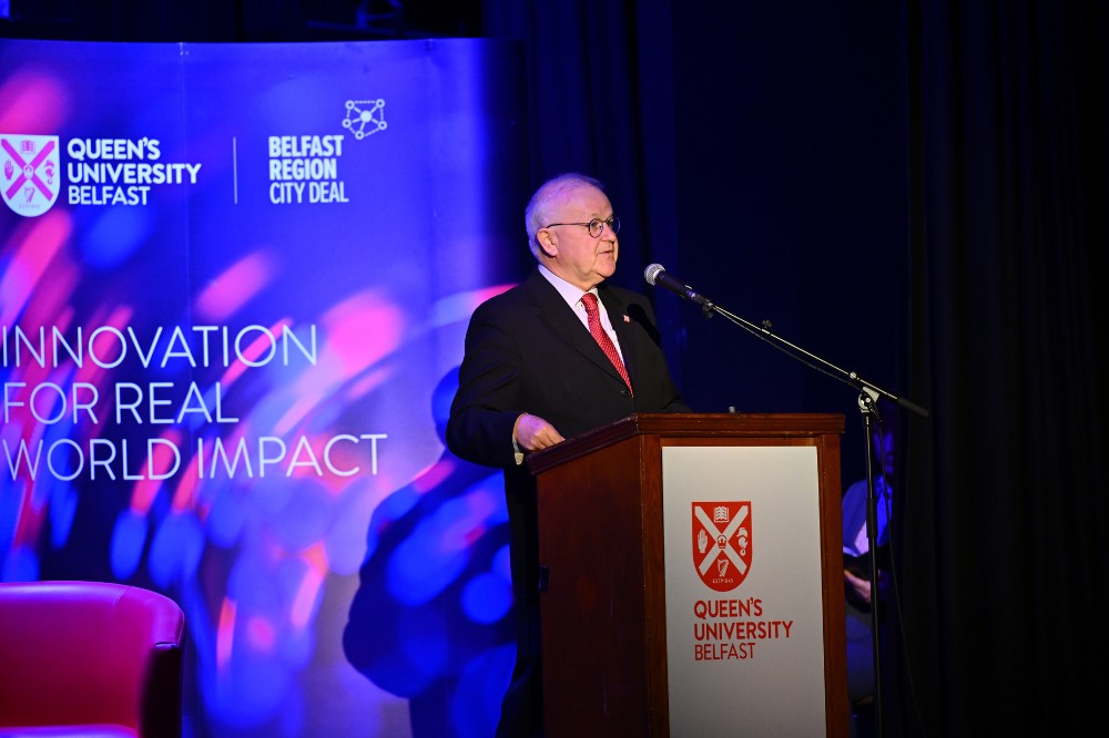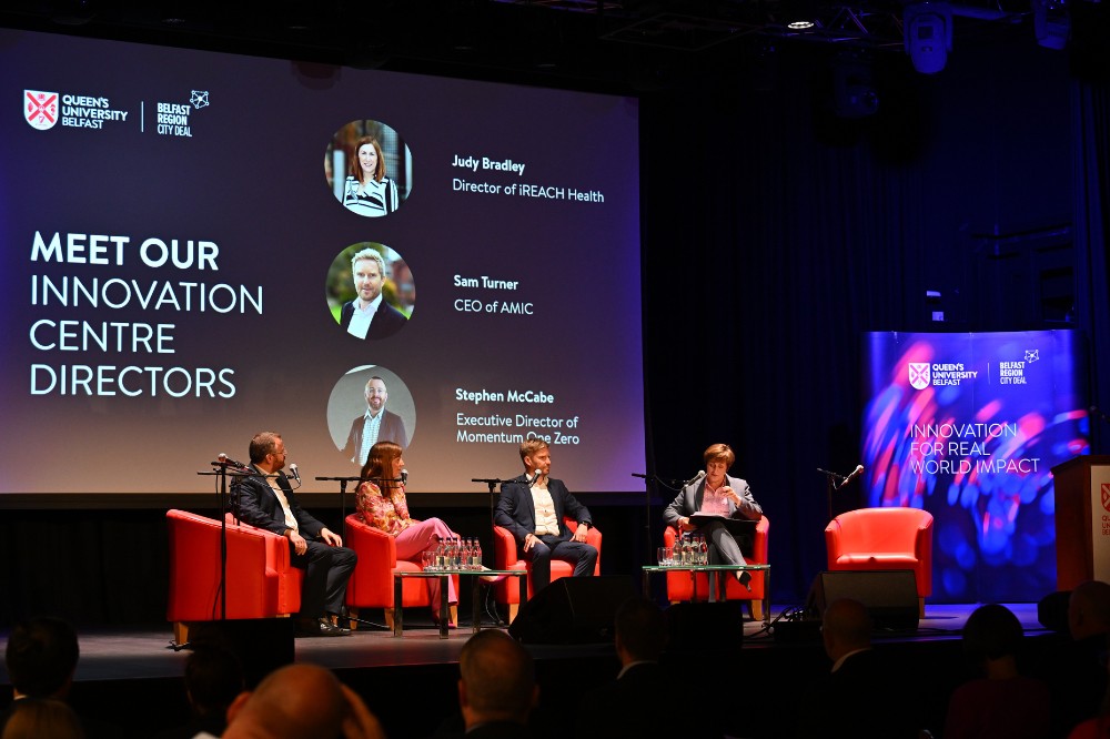 At the event, hosted by broadcaster and event host Donna Traynor, Deputy Vice-Chancellor Professor Stuart Elborn told an audience of over 200 internal and external stakeholders, including Economy Minister Conor Murphy, about the significant progress that has been made in recent months by the Advanced Manufacturing Innovation Centre (AMIC), Momentum One Zero, and iREACH Health – Innovation Centres that are already live and delivering impact across the region.