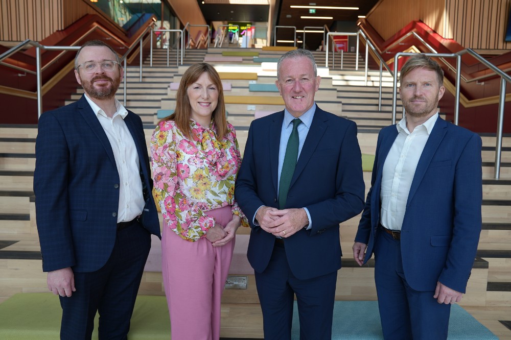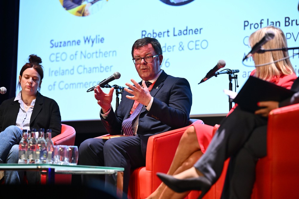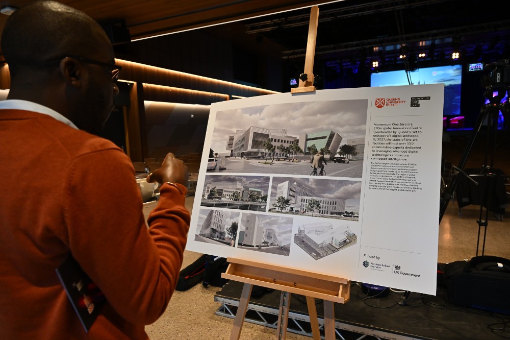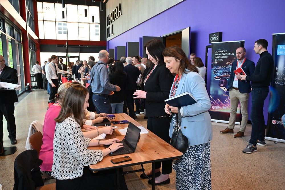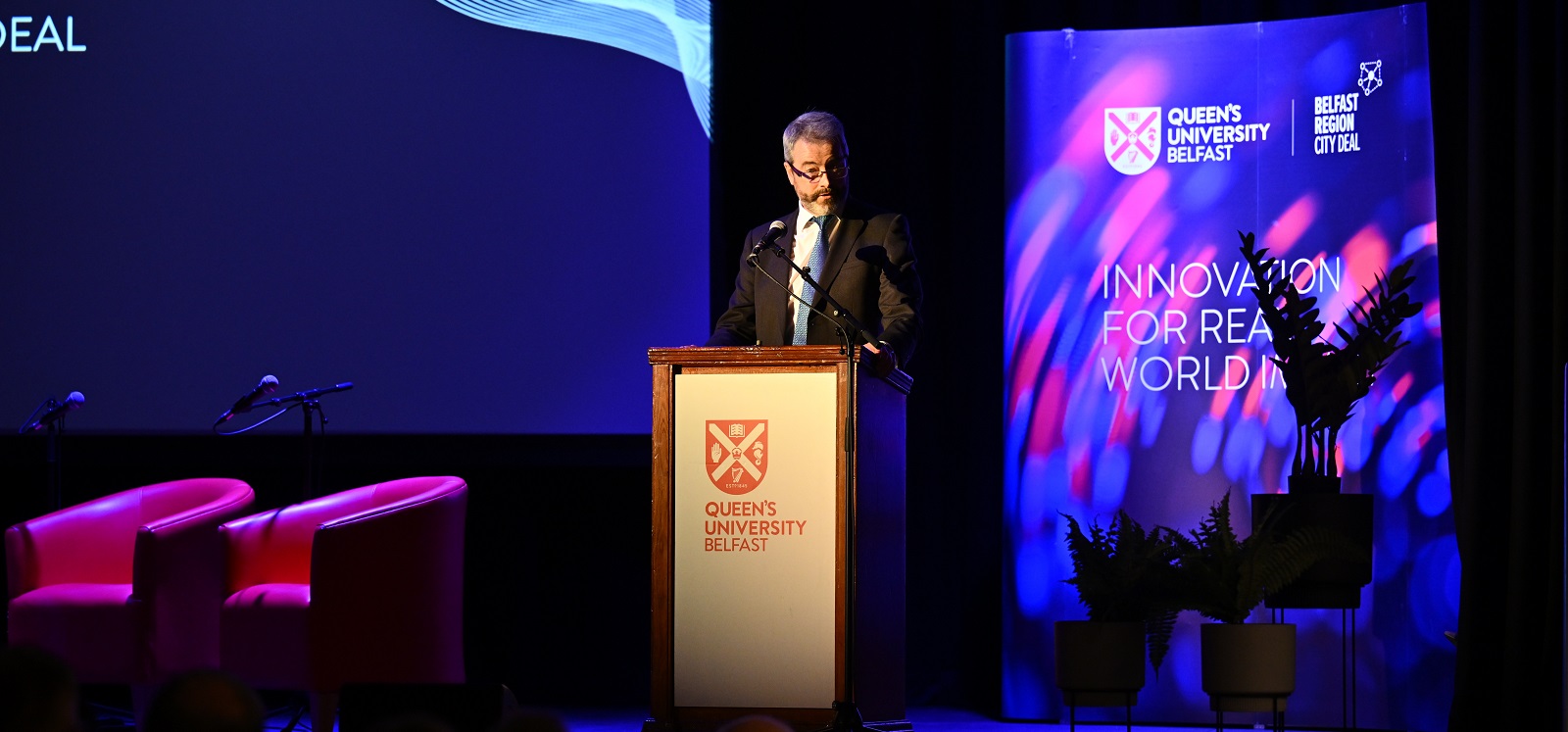 At the event, hosted by broadcaster and event host Donna Traynor, Deputy Vice-Chancellor Professor Stuart Elborn told an audience of over 200 internal and external stakeholders, including Economy Minister Conor Murphy, about the significant progress that has been made in recent months by the Advanced Manufacturing Innovation Centre (AMIC), Momentum One Zero, and iREACH Health – Innovation Centres that are already live and delivering impact across the region.