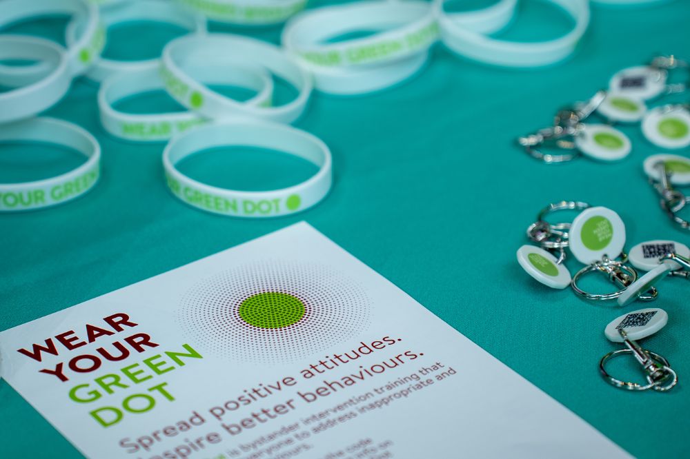 Green Dot is an active bystander training programme that focuses on sexual abuse, domestic abuse, harassment and hate crime. The training equips students and staff with the knowledge, skills, and confidence to identify, intervene, and report inappropriate attitudes and unwanted behaviours.