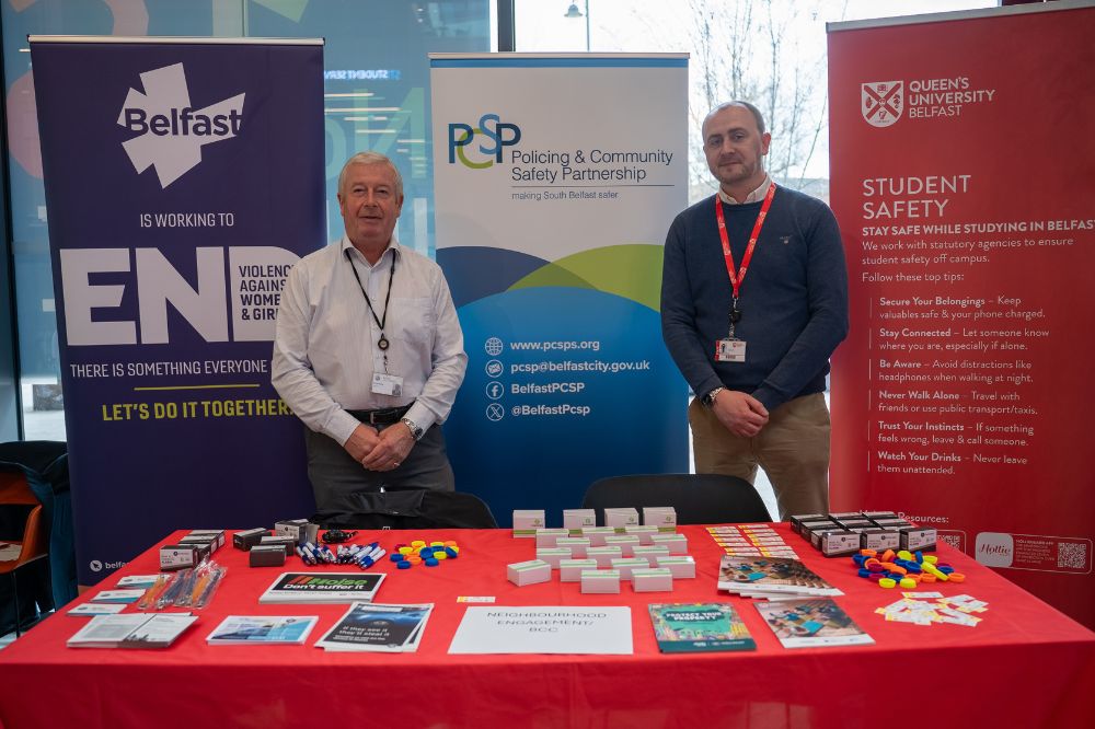 The event, held in One Elmwood, brought together support providers from across the University, including the Neighbourhood Engagement team, Equality, Diversity and Inclusion Team, staff and student Wellbeing Teams, and external partners; Spectrum.Life (EAP), Police Service of Northern Ireland, SOS Bus NI, and Women’s Aid.