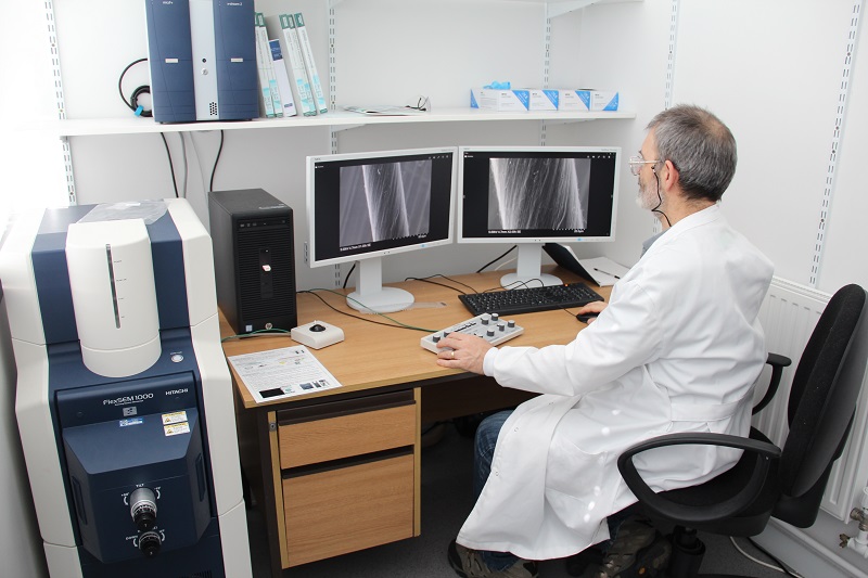Staff and students within the Advanced Composites Research Group have available, for hands-on operation, a state of the art SEM especially selected for its suitability for direct study of polymers, composites and sensitive materials. Fully optioned with BS, SE and EEDS, this machine is an invaluable tool for research and publication.