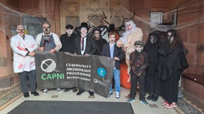 The CAPNI team brought their informative displays to the Derry-Londonderry Halloween Festival. it was a great opportunity to chat with lots of interesting people and generally enjoy the spooky Halloween vibes of The Maiden City. Many Halloween traditions and stories have associations with archaeology, from artefacts to folklore. Many people with initially think of bones and skeletons, but this was an opportunity to show the public there's more to archaeology, and Halloween.