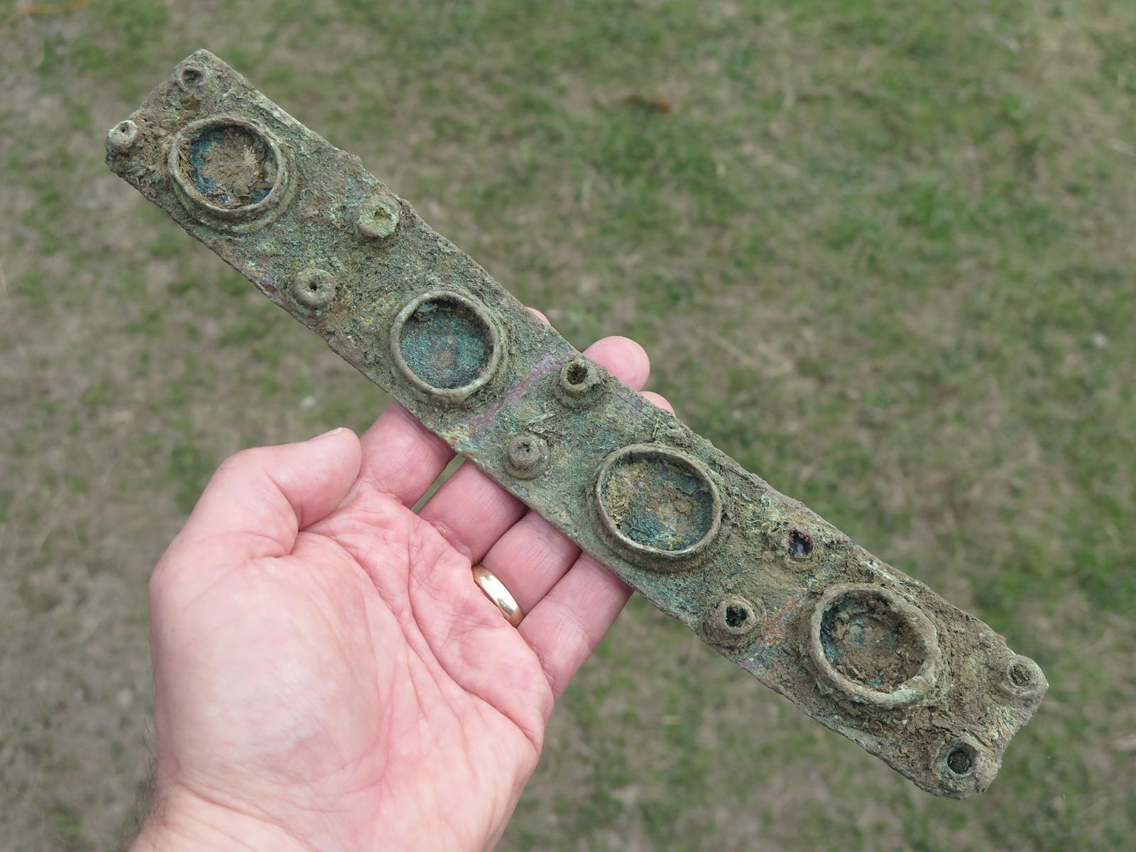 The 2019 excavations further explored the midden area (Trench 1) and investigated two new trenches (Trench 3 and Trench 4). Trench 1 revealed a second midden pit, both midden pits contained metalwork, animal bone and medieval pottery.  Another pit with in-situ burning was also excavated and contained a fragment of an early medieval cross-slab. Trench 3 to the north of the midden area uncovered a possible pre-historc ditch cut by a later pit which contained a medieval knife blade and a slate trial piece. Other finds from the upper levels of this trench included a medieval bone dice, copper slag and an Anglo-Norman arrowhead. Trench 4 uncovered a large circular pit, possibly a well which contained a large fragment of a medieval reliquary.