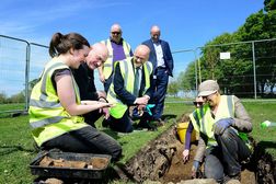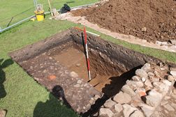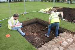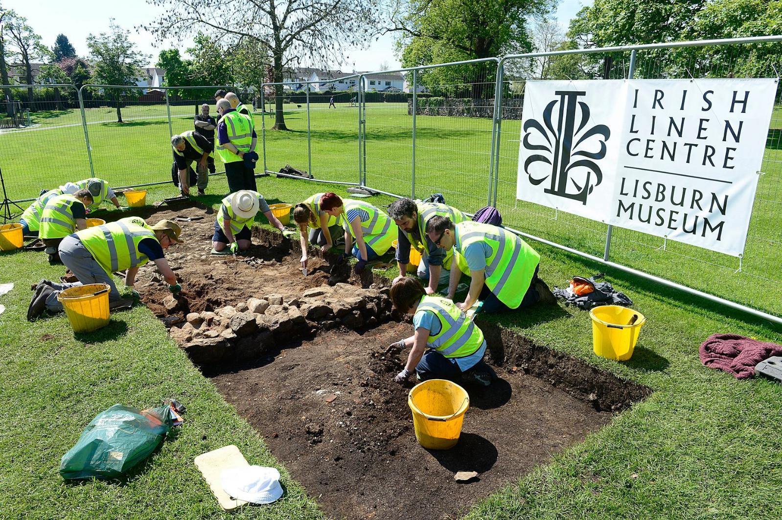 To investigate the Moira demesne crop marks a geophysical survey was carried out by Dr Siobhán McDermott of the Centre for Archaeological Fieldwork (CAF) at QUB in March 2019, on behalf of the Lisburn and Castlereagh City Council. The survey recorded three interesting sub-surface anomalies. To find out what these were the CAF, in conjunction with Lisburn Museum, carried out a two-week community-based archaeological excavation at the site in May 2019, directed by Ruairí Ó Baoill. This excavation was also commissioned and funded by Lisburn and Castlereagh City Council.
