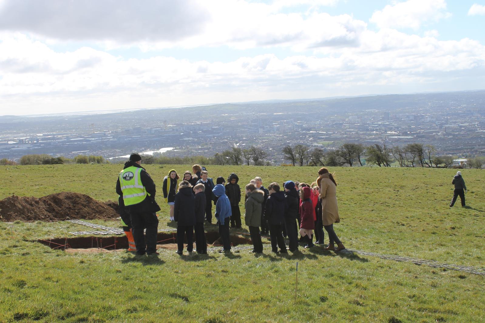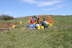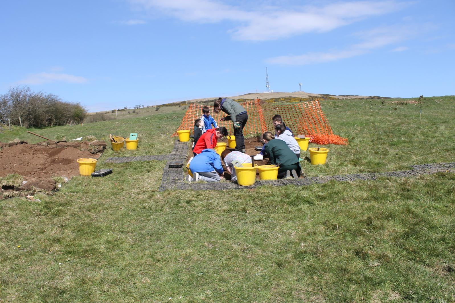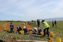 The excavation was led by professional archaeologists, but this was a community-based programme that enabled members of the local community to participate in the fieldwork. Approximately 300 schoolchildren (including 10 classes/ 216 children from local schools) and adult volunteers participated in the excavation or visited the site during the course of the work, while there was an Open Day (Saturday 23 April 2016) when tours took place and artefacts uncovered during the excavation were on display for the public to see, as well as a photogrammetry workshop session carried out by the CAF’s Dr Siobhán McDermott.