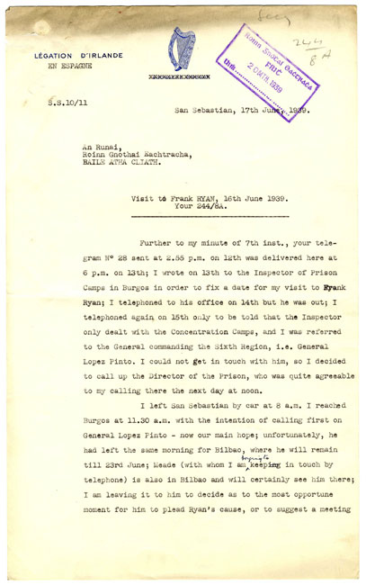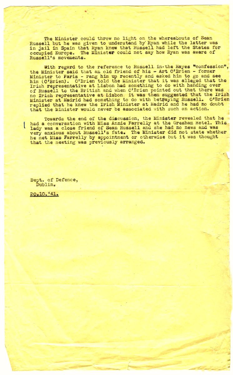 Source: Memo on Frank Ryan by Colonel Dan Bryan of an interview with Leopold Kerney, Dublin, 20 October 1941, NAI DFA Secretary’s files A20/4 (courtesy of National Archives of Ireland).