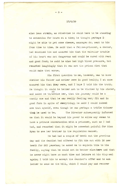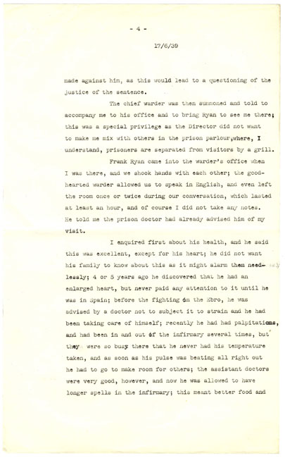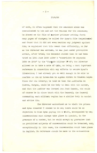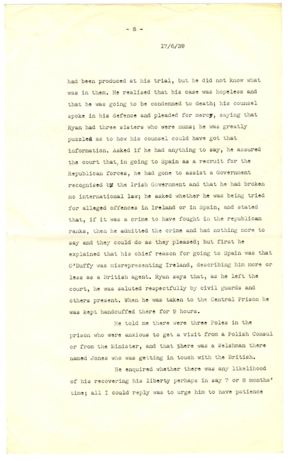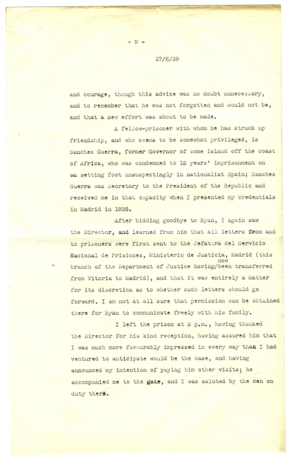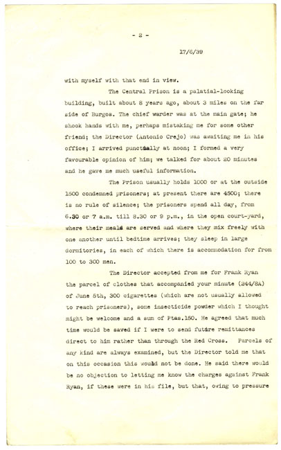 Kerney – an ideologically committed republican rather than a career civil servant – was both personally sympathetic to Ryan’s plight and politically sympathetic to his republican objectives. In Document 1 Kerney describes his visit to Burgos prison and the harsh conditions he witnessed there.