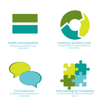 We aim to identify and implement actions to maximise health and wellbeing benefits from urban green and blue spaces (UGBS) such as parks, community gardens, canals and rivers. From collecting data and conducting community research, to creating policies and supporting active citizenship, we are learning more about how UGBS impact economic, social, cultural, environmental and health systems. Our research and decision-making processes are democratic, ensuring that the voices of individuals and communities are heard. We believe in collaborating with community and policy stakeholders in all areas of our work, from research and design to implementation and evaluation of research findings.