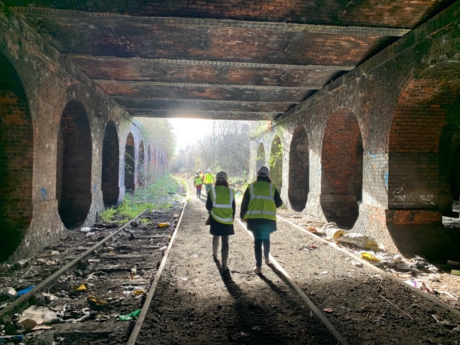 Upon entering the site, it is easy to imagine how the new park will look with trees already lining the abandoned railway track which is also bordered by beautiful archways - you can imagine cyclists, dog walkers, families, and people out for fresh air strolling along the linear parkway. Despite the amount of fly tipping and litter, which will be first on the to-do list when construction starts, it is a beautiful stretch of open space just below street level.