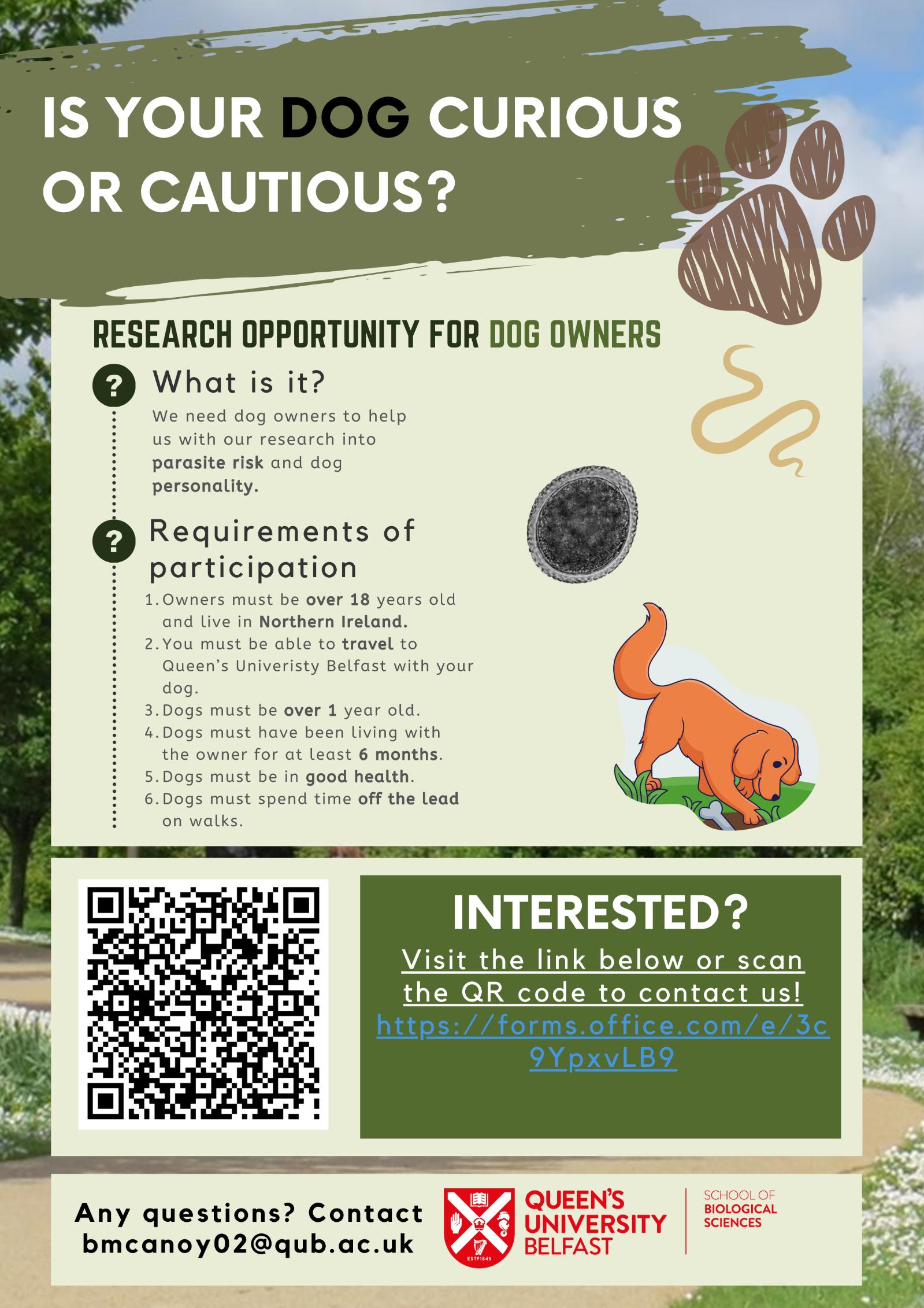 If you are a dog owner in Northern Ireland and interested in taking part in this research, see below or contact Ben at bmcanoy02@qub.ac.uk.