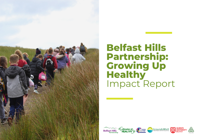 Through the Innovation Fund, GroundsWell partnered with Belfast Hills Partnership to support the delivery of Growing Up Healthy and to evaluate the impact of the 6-week programme. The impact report provides a summary of the impact of the programme, on the young people, their friends, family and community, and their schools, including physical health, mental wellbeing, and social benefits.