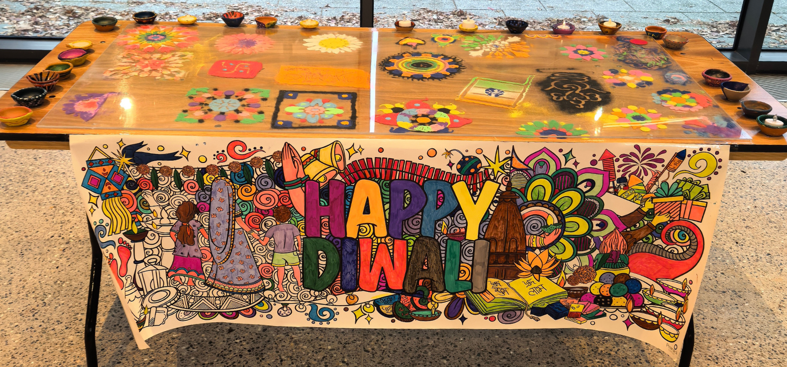 The creation of Rangoli designs and decorations with colorful patterns gave everyone the chance to participate.