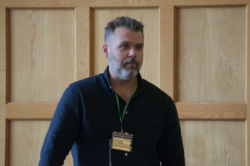 Dr. James Steinhoff is an Assistant Professor, Lecturer and Ad Astra Fellow in the School of Information and Communication Studies at UCD. His research focuses on the political economy of algorithmic technologies, data and digital labour and draws on media studies, science and technology studies and labour studies. James gave our second keynote of the day, beginning the afternoon’s proceedings with a thought-provoking talk presenting, “Three theses on AI and Automation”. His talk explored the evolving nature of automation, arguing that it is a gradual, continuous process (accretionary), increasingly relies on synthetic data rather than real-world inputs (synthetic), and transforms rather than replaces human labour by creating new categories of work (labour). Drawing from media theory, political economy, and labour process theory, he critiqued simplistic economic narratives and explored how software-based automation, particularly in machine learning and synthetic data, has reshaped the dynamics of capitalist production. Highlighting roles such as technical artists who automate automation itself, he argues for a deeper understanding of automation’s social implications. This talk challenged us to rethink AI not just as technology, but as a structural force driven by capitalist imperatives.