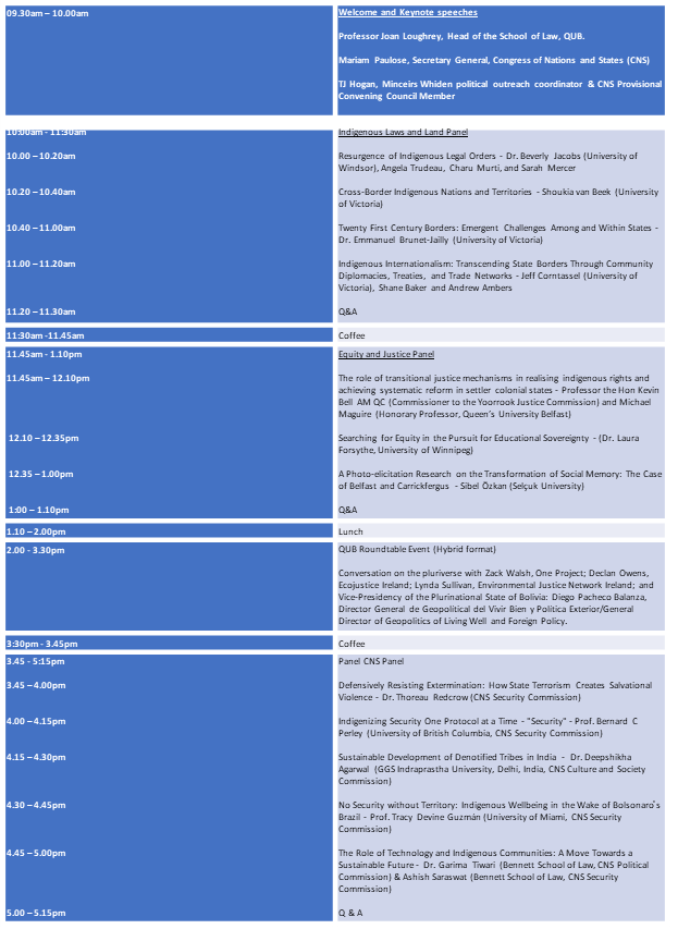 The conference will be co-hosted by the Congress of Nations and States (CNS) and Queen’s University Belfast (QUB). This conference is scheduled to take place on 14 October, 2022 in Riddel Hall at Queen’s University, Belfast, Northern Ireland (remote participation is available). The conference will be held concurrently with the Congress of Nations and States’ inaugural Assembly, also in Belfast, but as a separate event.