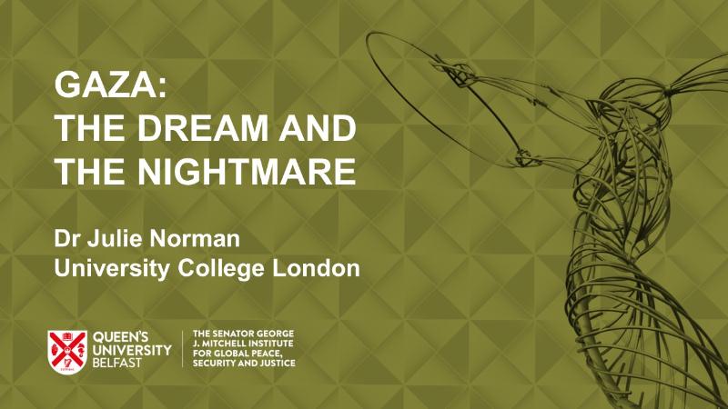 This seminar will focus on the themes of the latest book by Dr Julie M. Norman and Maia Carter Hallward, Gaza: The Dream and the Nightmare (Polity, 2025) which tells the story of Gaza from its early foundations, across decades of occupation, to the devastation of the ongoing war.   Rather than focusing on elites or abstract politics, at the book’s heart are ordinary Gazans -- students, aid workers, journalists, and techers -- whose first-hand testimonies vividly illuminate the realities behind the headlines.