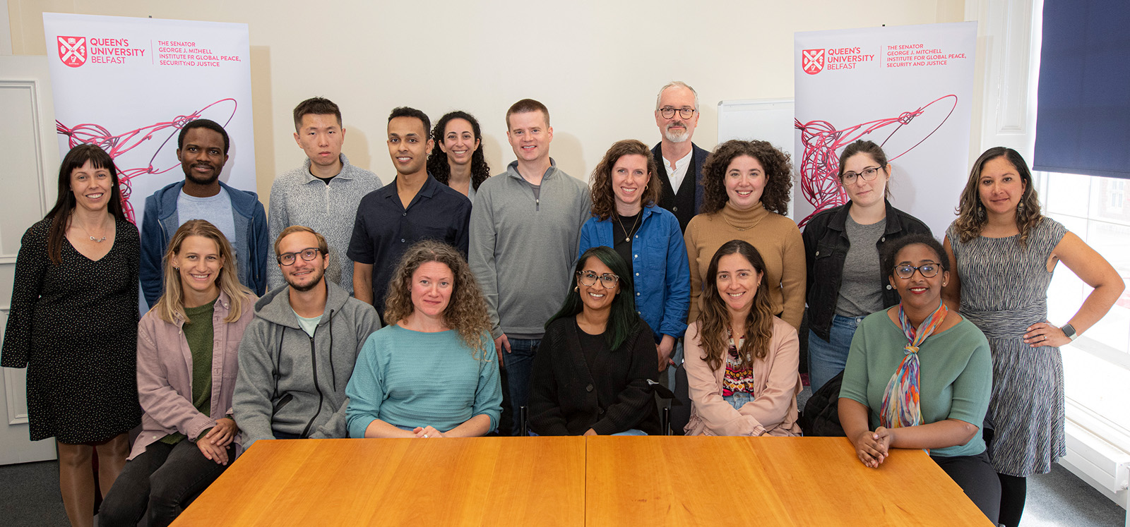 In September 2022 a group of graduate students from the Pearson Institute for the Study and Resolution of Global Conflicts (University of Chicago) visited Belfast and heard from QUB colleagues about their work. Mitchell Institute Sabbatical Fellow Dr Peter McLoughlin, Honorary Professor Chris Maccabe, Institute Director Professor Richard English, and Dr Jocelyn Dautel from the School of Psychology all spoke to the group about their research and areas of expertise, further strengthening the relationship between the Mitchell and Pearson Institutes.