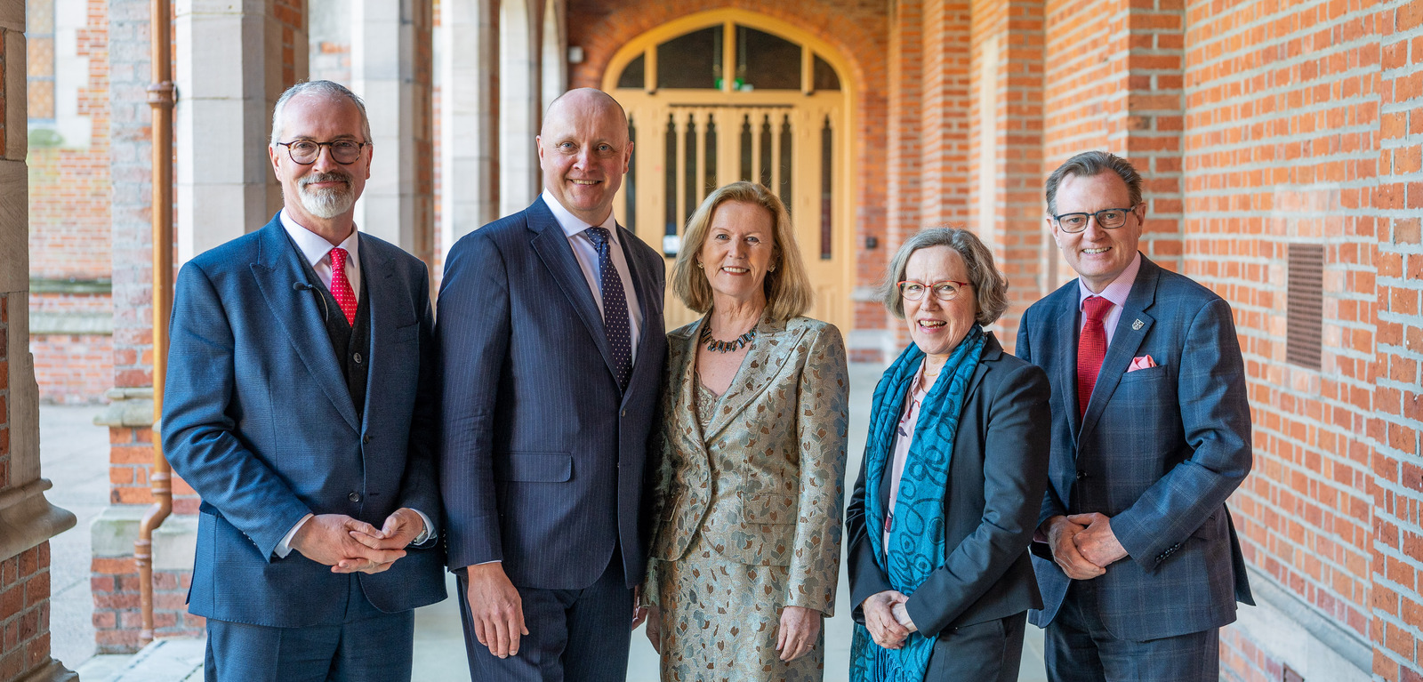 Pictured L-R are: Professor Richard English, Director, Senator George J. Mitchell Institute for Global Peace, Security and Justice; His Excellency Jukka Siukosaari Ambassador of Finland to the UK; Dr Anne Anderson, former diplomat and speaker for the Harri Holkeri lecture 2023; Her Excellency Raili Lahnalampi, Ambassador of Finland to Ireland; and Professor Ian Greer, President and Vice-Chancellor of Queen’s.
