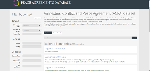 Explore the Amnesties, Conflict and Peace Agreement (ACPA) Database.