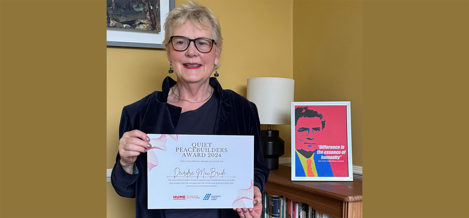 Congratulations to Mitchell Institute alumna Dr Deirdre MacBride who recently received a Quiet Peacebuilder Award from the John and Pat Hume Foundation.