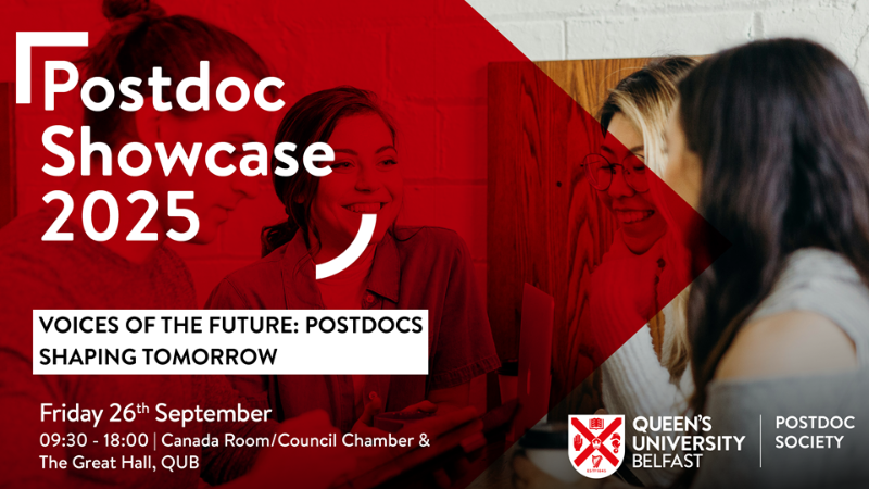 Organised by the Postdoc Society ('by postdocs, for postdocs'), this event is an opportunity for all research staff at Queen's to showcase their research, learn about others' research, and network.