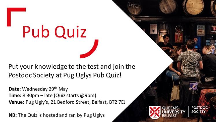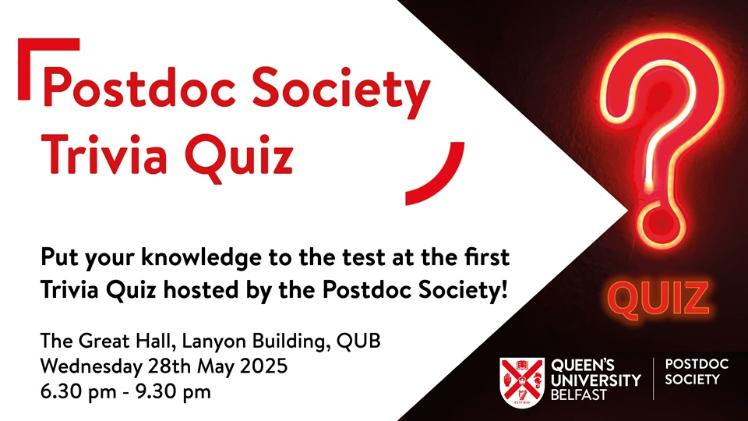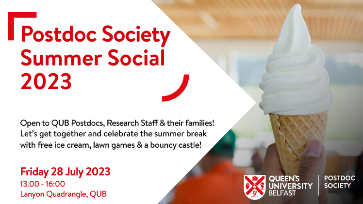The Postdoc Society is led by and made up of Postdocs and Research Staff with representation from various schools across Queen's University Belfast.