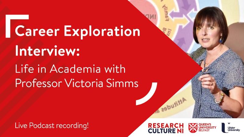 In this event Professor Victoria Simms will be interviewed by Jill Wright, Research Careers and Employability Officer in the Postdoctoral Development Centre at Queen's University Belfast. Jill will ask some prepared questions but also relay questions shared by the audience in the event chat.