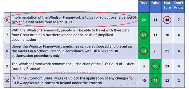 Attracting some notable comment was the extent of misinformation around the Protocol/Windsor Framework and the lack of information available on the Protocol and the recent UK-EU discussions. As this and previous polls have indicated, around two in five respondents have concerns about the availability of reliable information on the Protocol (see Figure 1 above).