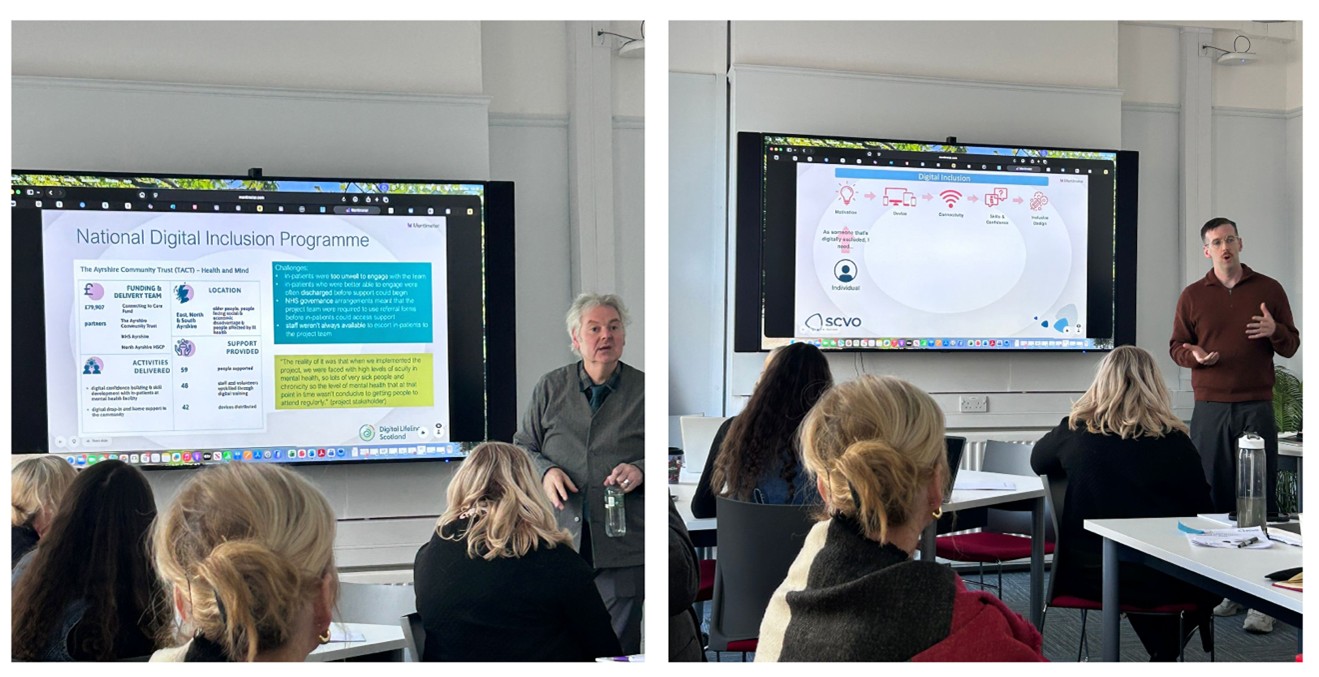 Building on these reflections, the session turned to learning from best practice examples. Expert contributions from the Digital Health & Care Innovation Centre (DHI) and the Scottish Council for Voluntary Organisations (SCVO) provided inspiration and practical insight. Alan Connor (DHI's portfolio lead of Digital Addiction Support) shared approaches to embedding digital inclusion within existing service provision, with a focus on the impact of digital solutions in Scotland. Aaron Slater (Digital Inclusion Manager, SCVO) explored digital inclusion in more detail, with consideration at individual, organisational and sectoral levels. These sessions sparked rich discussion on how such models could be relevant, adaptable and scalable within the SUMIT context.