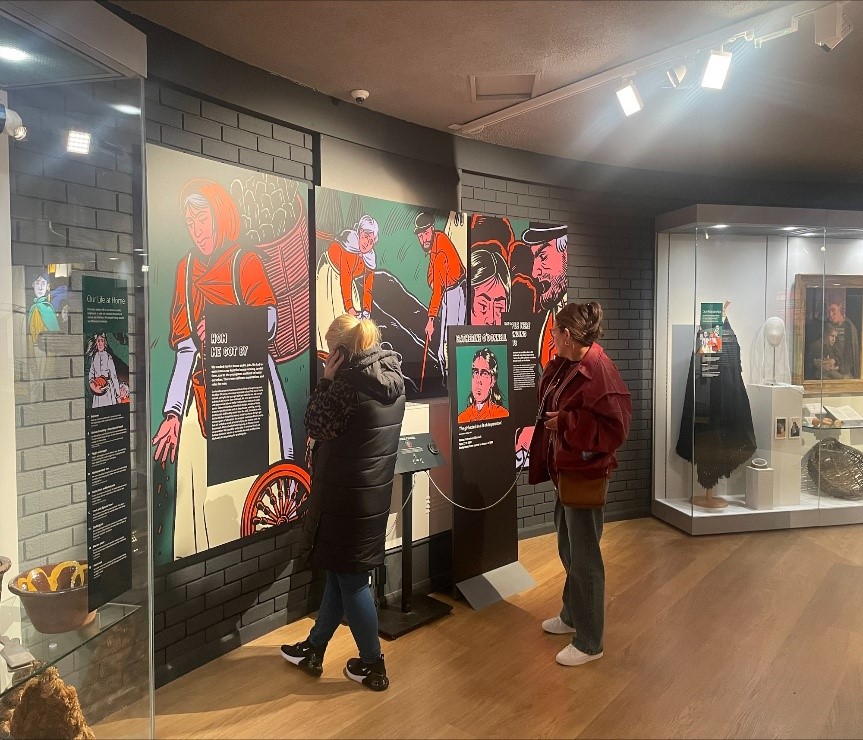 This exhibition tells the stories of thousands of women who left Ireland for North America between 1838 and 1918, many of which found themselves in trouble and struggling to survive. Victoria Millar, senior curator of History at National Museums Northern Ireland, provided an engaging tour, guiding the group through an eclectic mix of sights, sounds, smells and objects that illustrate these women's experiences of migration.