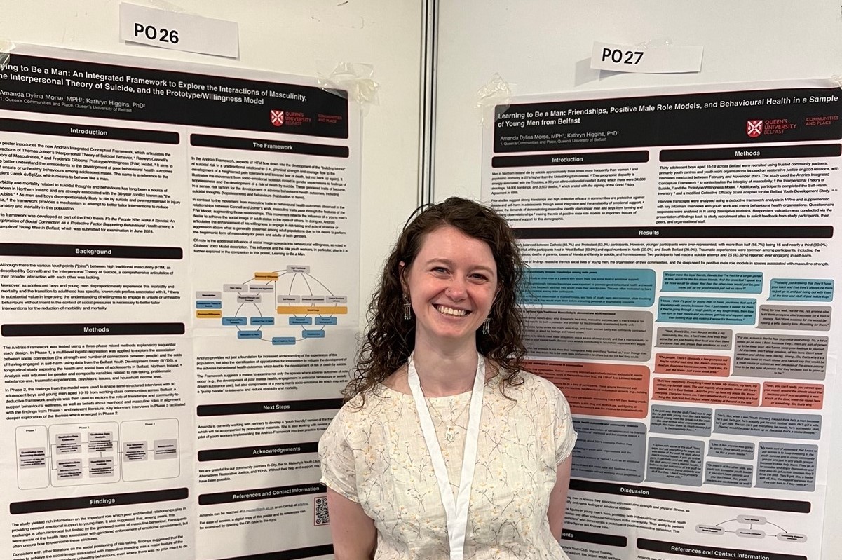 Amanda presented findings from her PhD, which combined a secondary analysis of data from the Belfast Youth Development Study (BYDS) and interviews with adolescent boys and young men from working-class communities in Belfast. One of the posters presented the new Andrizo Integrated Conceptual Framework for understanding how risk-taking and gender expectations influence the development of suicidal risk in adolescent males. The other shared findings related to the roles of friendships, role models, and community organisation in the protection of young men’s mental health, including the importance of youth workers as both behavioural health supports and community violence interrupters.