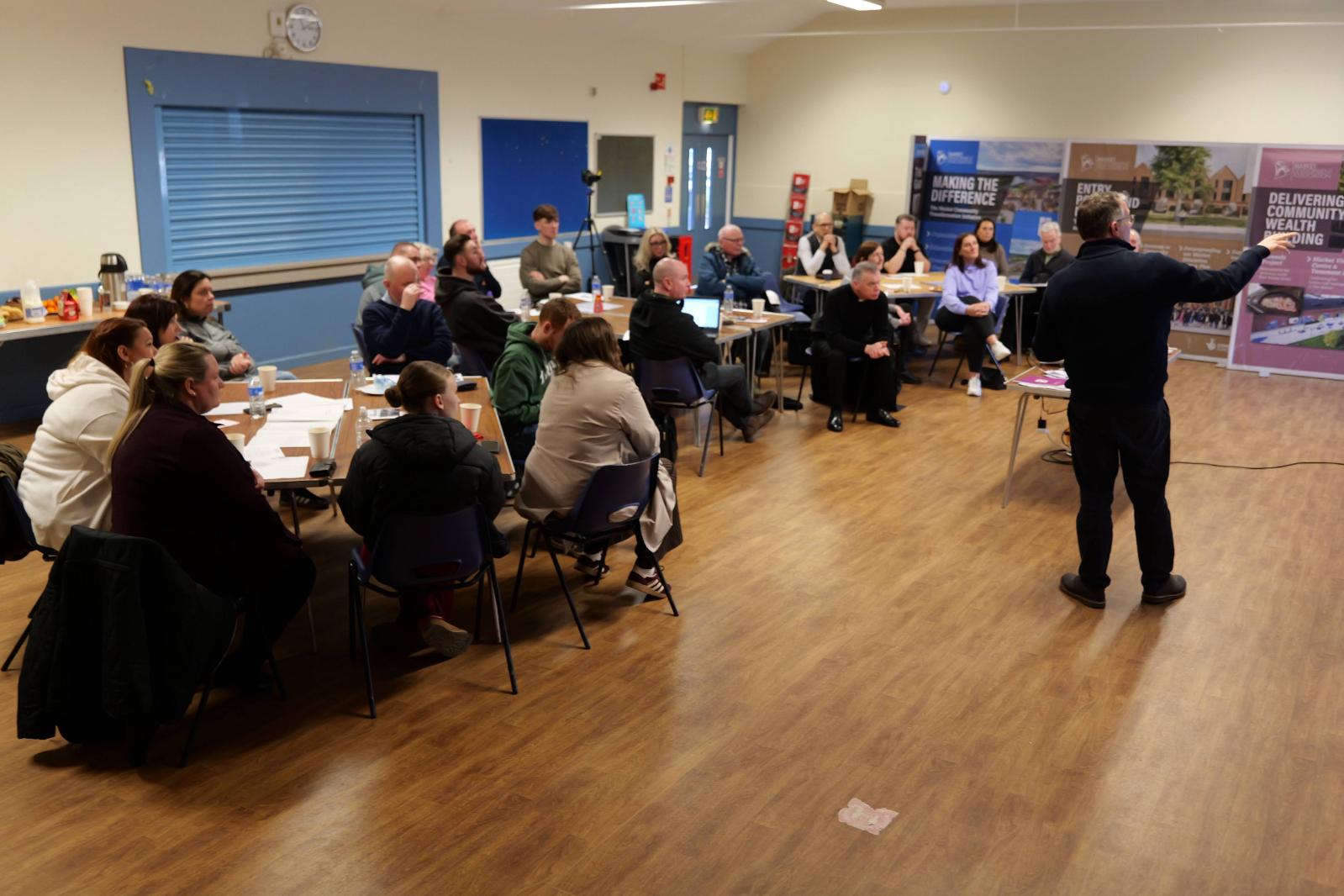 The session opened with an introduction from Fionntán Hargey (MDA) and Jamie Curran (Heritage Consultant), who set out the purpose of the engagement and framed the opportunity presented by the school building's scale, condition, and architectural character. Participants were then guided through a series of presentations examining the site in detail, covering its current physical state, its heritage significance, and the range of possible futures that might be pursued.