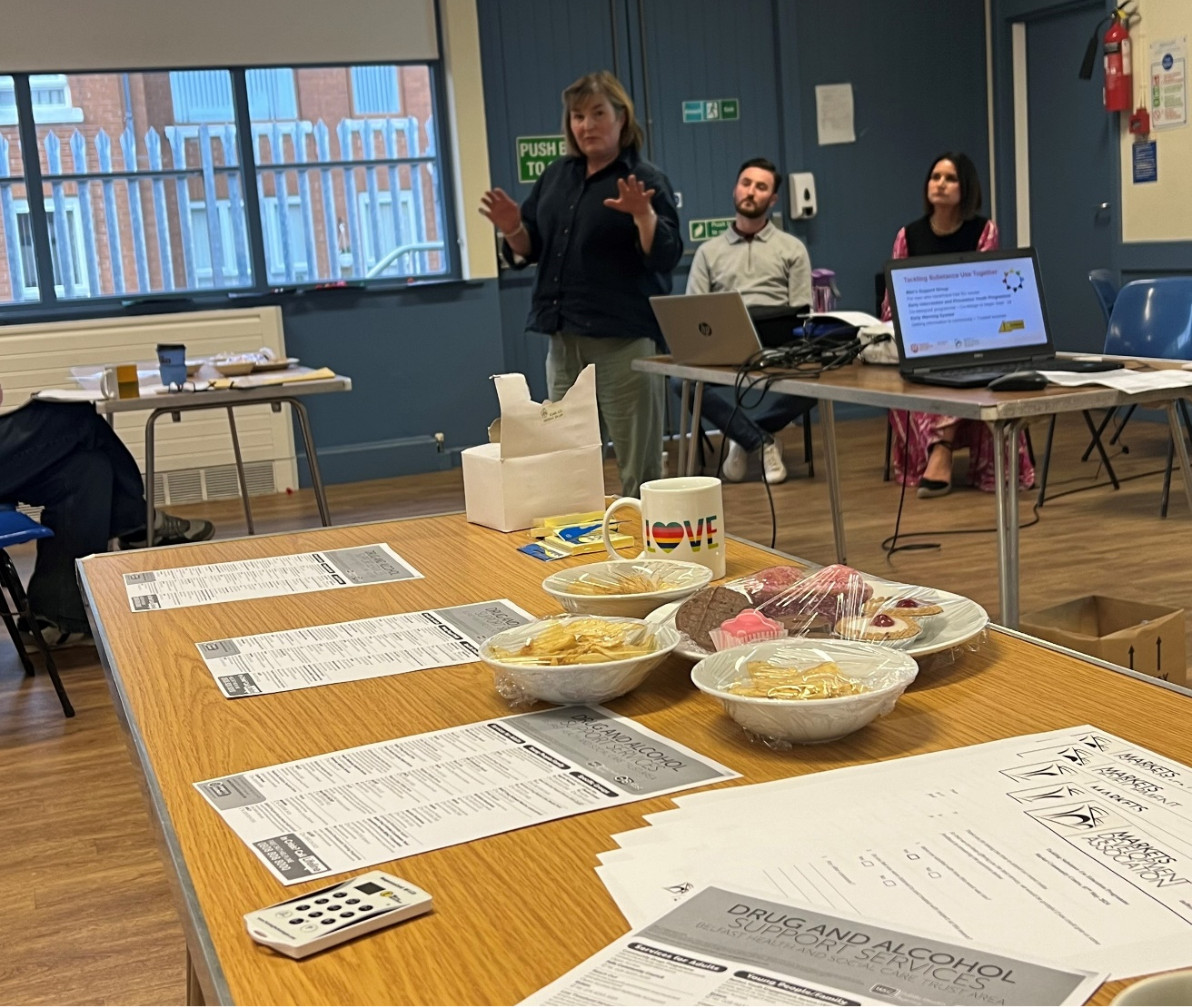 The session focused on raising awareness of existing support services for substance use in Northern Ireland, the nature of these services, and how to access them. The session was co-facilitated by Professor Kathryn Higgins (QCAP Director) alongside two residents from the Market community, Rachel Stitt and Tony Dorrian.