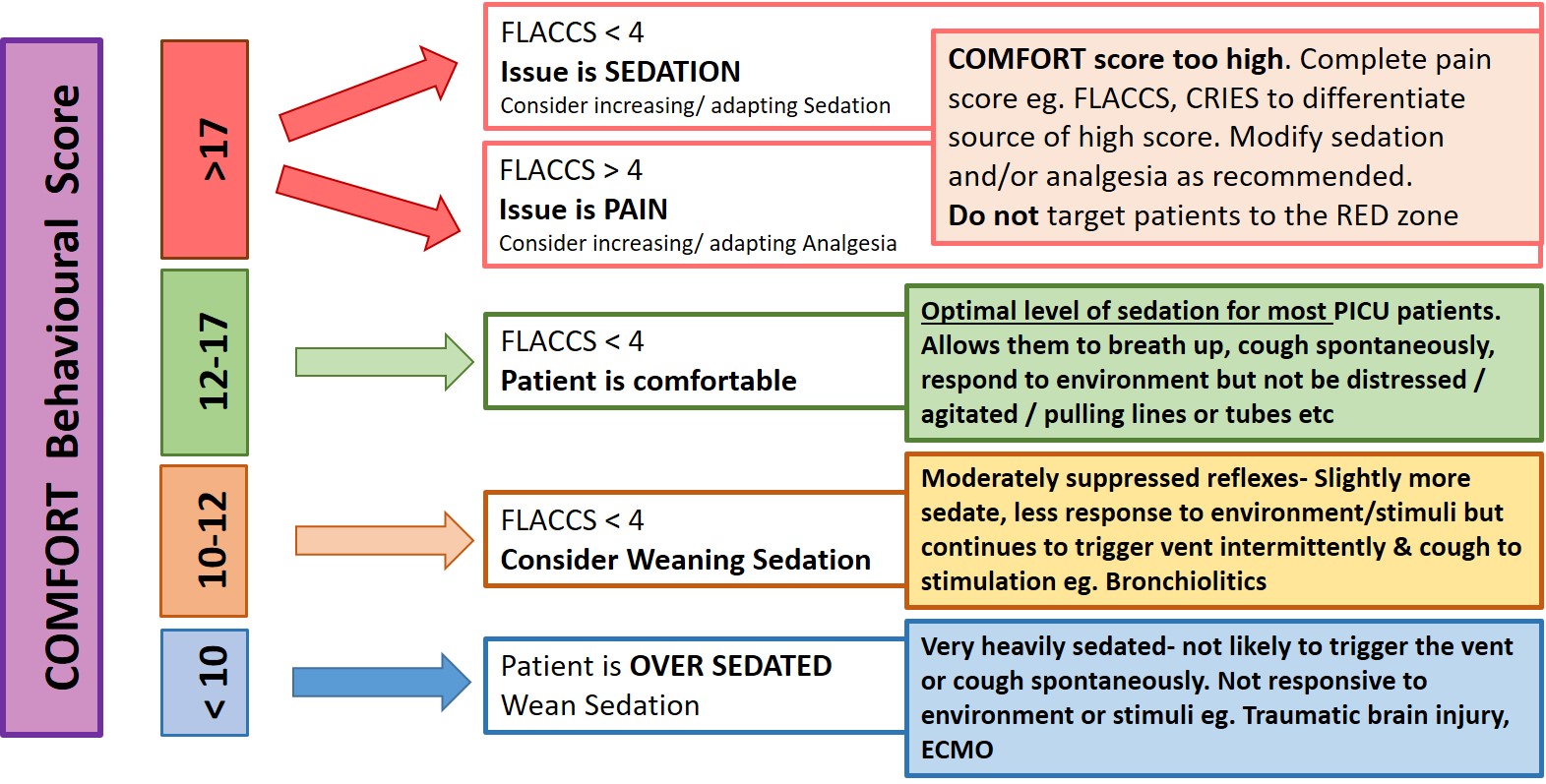 Please click on the drop down sections below to get a more indepth explanation of each of the COMFORT B score target zones and what to do to achieve them.