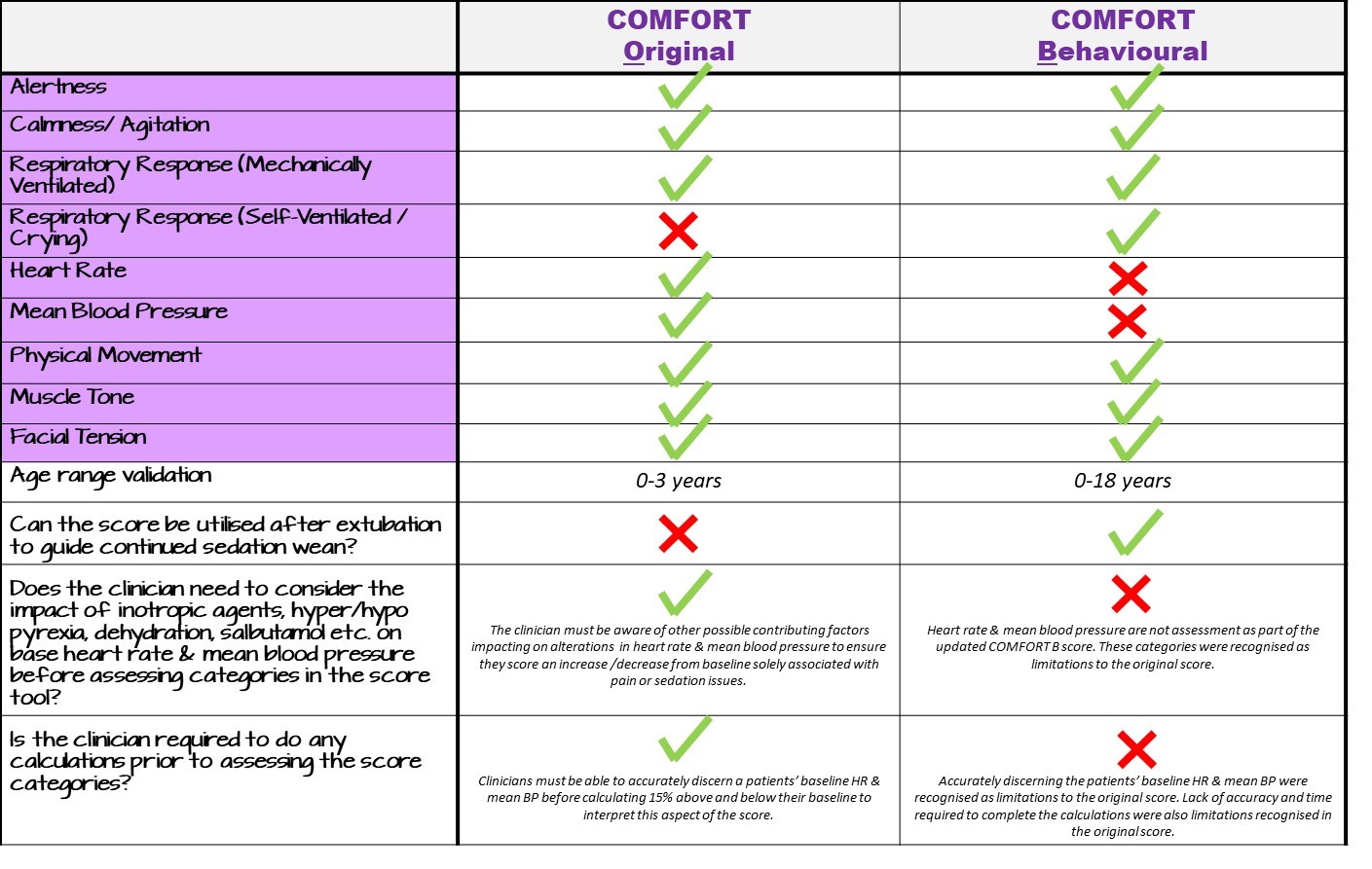 COMFORT Original & COMFORT Behavioural Score Comparison