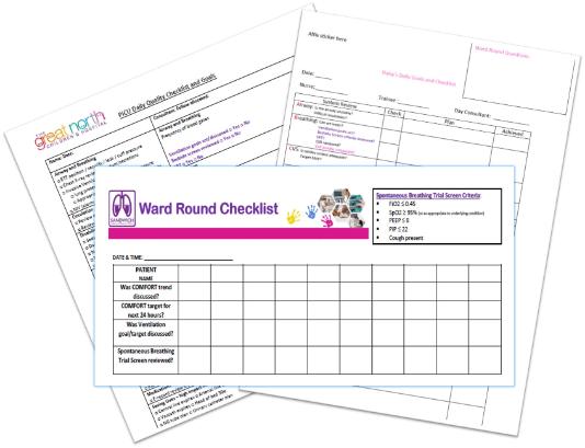 What checklists are needed to record the ward round?