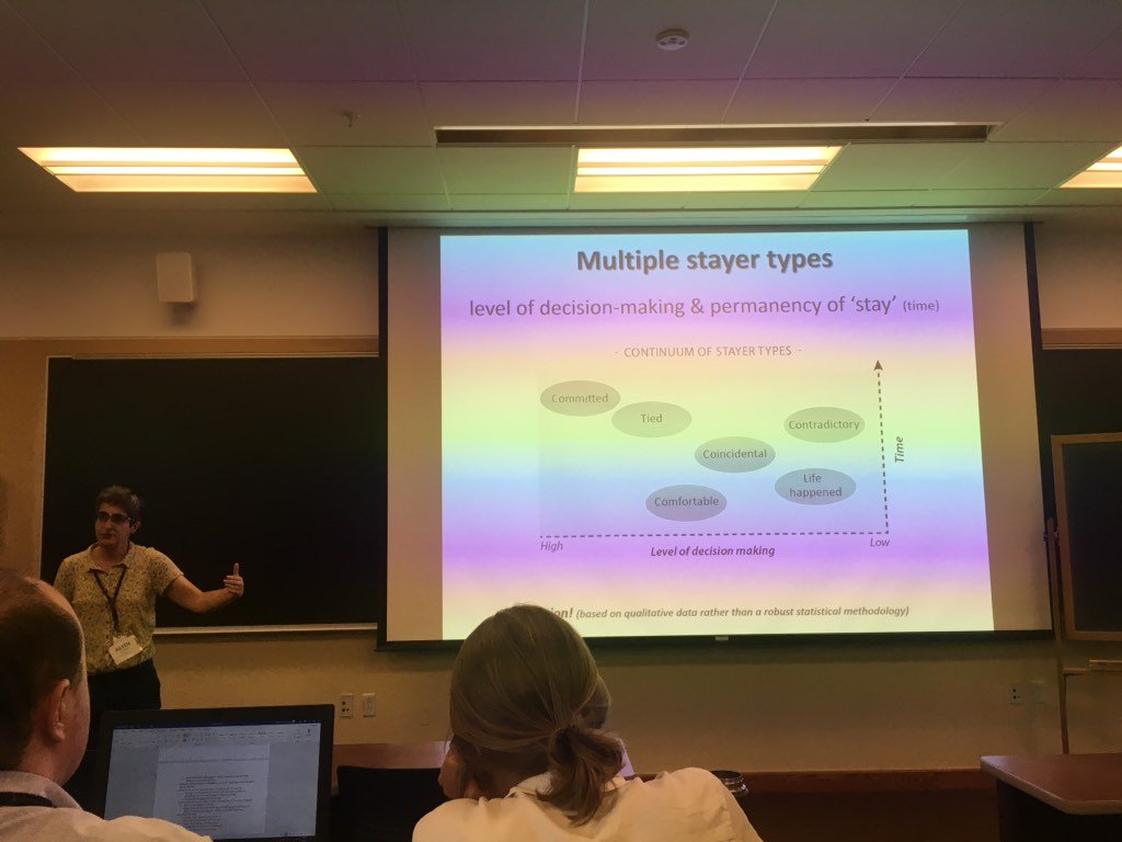 However, before this, one of the Principal Investigators on the team, Professor Aileen Stockdale, travelled to Burlington, Vermont, to present an introduction to our project at the 9th Quadrennial UK-US-Canadian Rural Geography conference, which was enthusiastically attended by a large number of scholars in the field of rural geography. Pictured is Aileen presenting an overview of the different stayer types identified in the preliminary stages of the project.