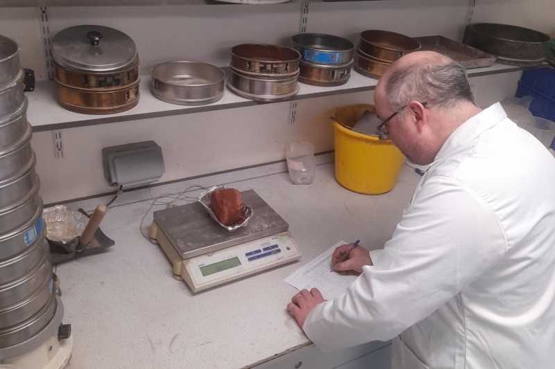 "My role is to keep the lab tidy and to assist the students and academics with preparing samples and by testing samples from industryIn the first picture I am using the Triaxle machine to test the load the sample can take before it fails. In the second picture I am removing the sample from a bore hole tube that has to go through various tests for industry, and in the final picture I am checking the mass of the sample before it is heated in the oven at 110 degrees, after 24 hours it will be weighed again and the moisture content can be calculated."