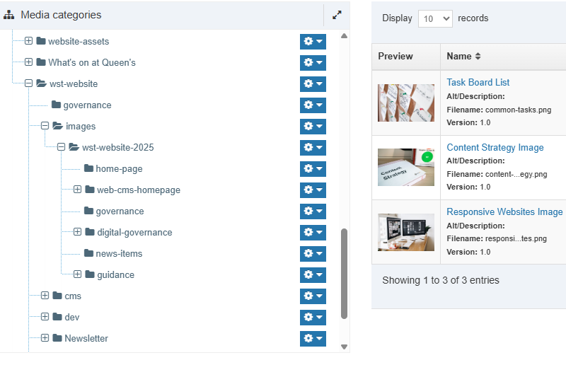 The Media Library is used to store and manage a range of resources for use when creating content in the Web CMS. The most common types of media are images and documents.